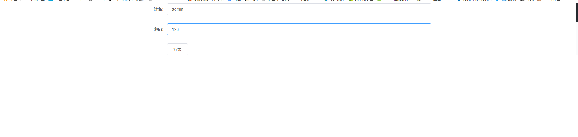 | <template> <div class="hello"> <el-form ref="form" :model="form" label-width="80px"> <el-form-item label="姓名:"> <el-input v-model="form.name"></el-input> </el-form-item> <el-form-item label="密码:"> <el-input v-model="form.pwd"></el-input> </el-form-item> <el-form-item> <el-button @click="login()">登录</el-button> </el-form-item> </el-form> </div> </template>