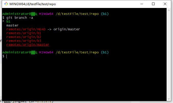 在这里可以看到已经和远程仓库绑定了,在同样的操作绑定b2。然后开始合并,首先把b1合并到master中去: