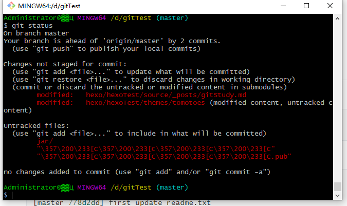 如果显示的是上面的语句,那么说明工作目录非常干净,没有被修改过。