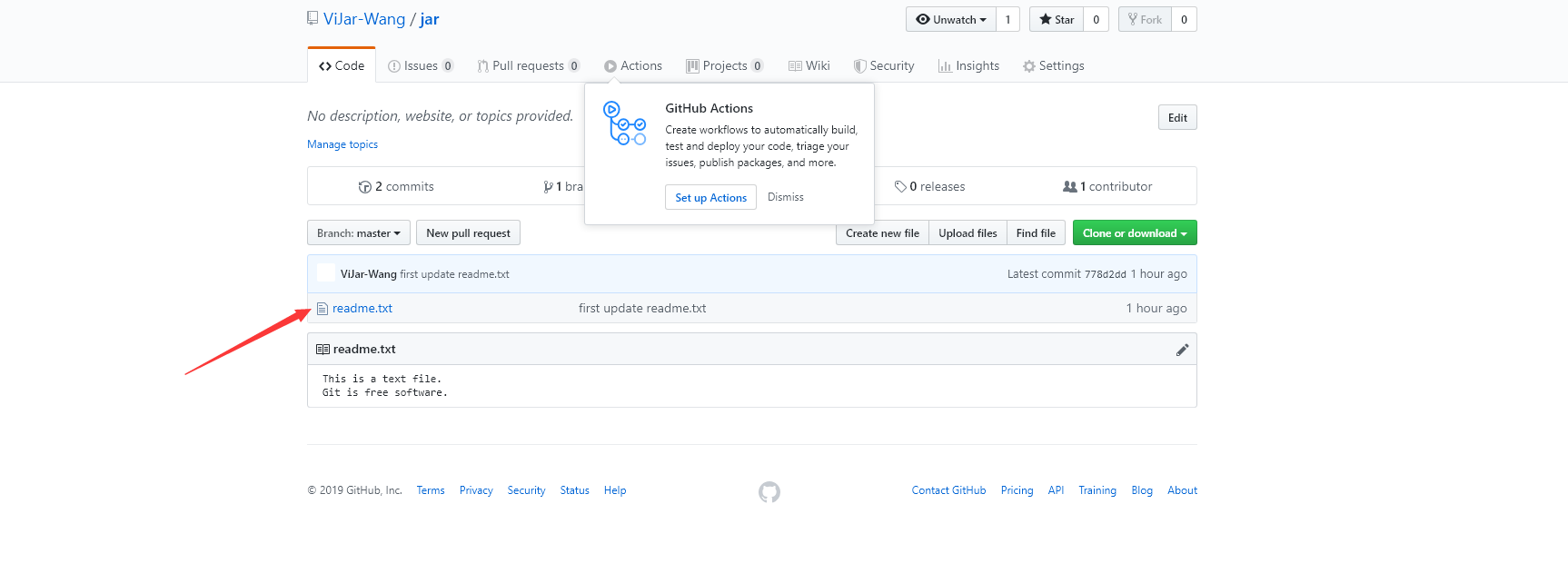 现在已经会上传文件到仓库了,那么在来一遍。修改readme.txt文件如下: