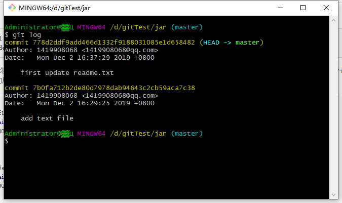 1 | $ git clone d:/testFile/repo |