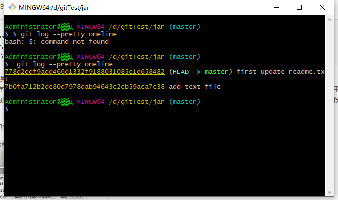 现在,我们要把当前版本first update readme.txt回退到上一个版本add text file,就可以使用git reset命令: