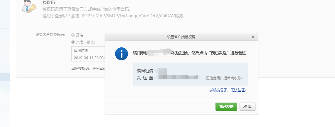 点击右侧菜单中的客户端授权密码,然后再点击开启,安装提示信息发送完短信就可以设置授权码了:
