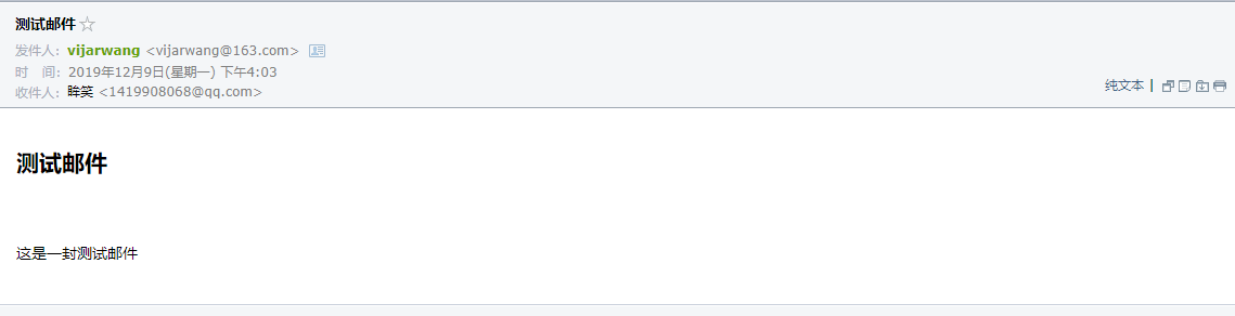 Transport transport = session.getTransport(); transport.connect(smtp_host, username, password); transport.sendMessage(message, message.getAllRecipients()); } catch (Exception e) { e.printStackTrace(); throw new RuntimeException("邮件发送失败..."); } } public static void main(String[] args) { sendMail("测试邮件", "这是一封测试邮件", "1419908068@qq.com"); } }