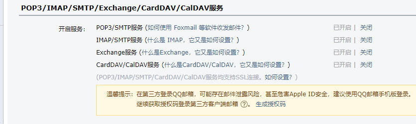 像图中这样把POP3/SMTP服务,IMAP/SMTP服务开启,然后生成授权码就好了