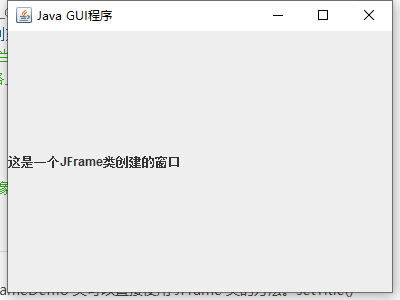JLabel jLabel = new JLabel("这是一个JFrame类创建的窗口"); Container c= getContentPane(); c.add(jLabel); setVisible(true); }